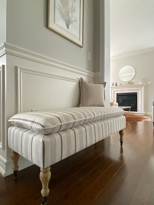 Linen Beige Ticking Fabric Upholstered Pillowtop 48" Rovigo Ottoman Bench