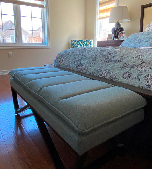 Upholstered Pillow Cushion Top 48" Hendraheim Ottoman Bench in Flannel Blue Fabric