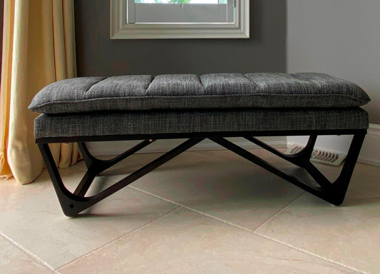 Upholstered Pillow Cushion Top 48" Hendraheim Ottoman Bench in Tweed Charcoal Grey Fabric