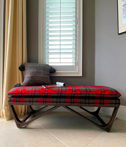 Highland Plaid Fabric Upholstered Pillow Cushion Top 48" Hendraheim Ottoman Bench