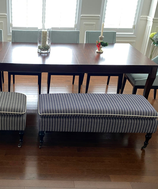 Linen Stripe Ticking Upholstered Pillowtop 48" Rossini Ottoman Bench with Multi Color Variants