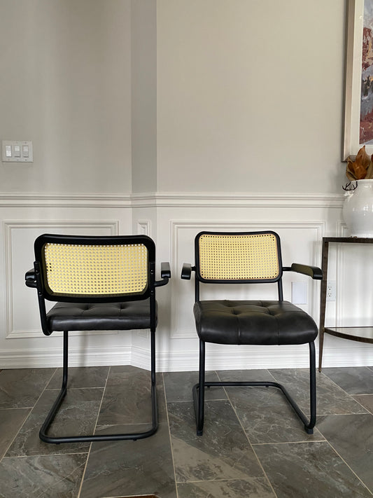 Grey PU Upholstered Rattan Back Elton Armed Dining Chair , Office Chair Set( 2pcs of set)