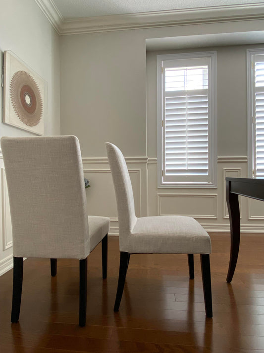 Removable Ivory Linen Cover, Bonded Leather Upholstered Richloom Parson Dining Chair