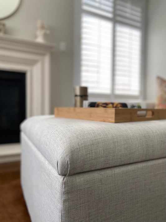 Ivory Linen Fabric Upholstered Roland Large Storage Cocktail Ottoman, Footstool-Livingroom-Large Storage-Hydraulic hinges-Solid wood frame